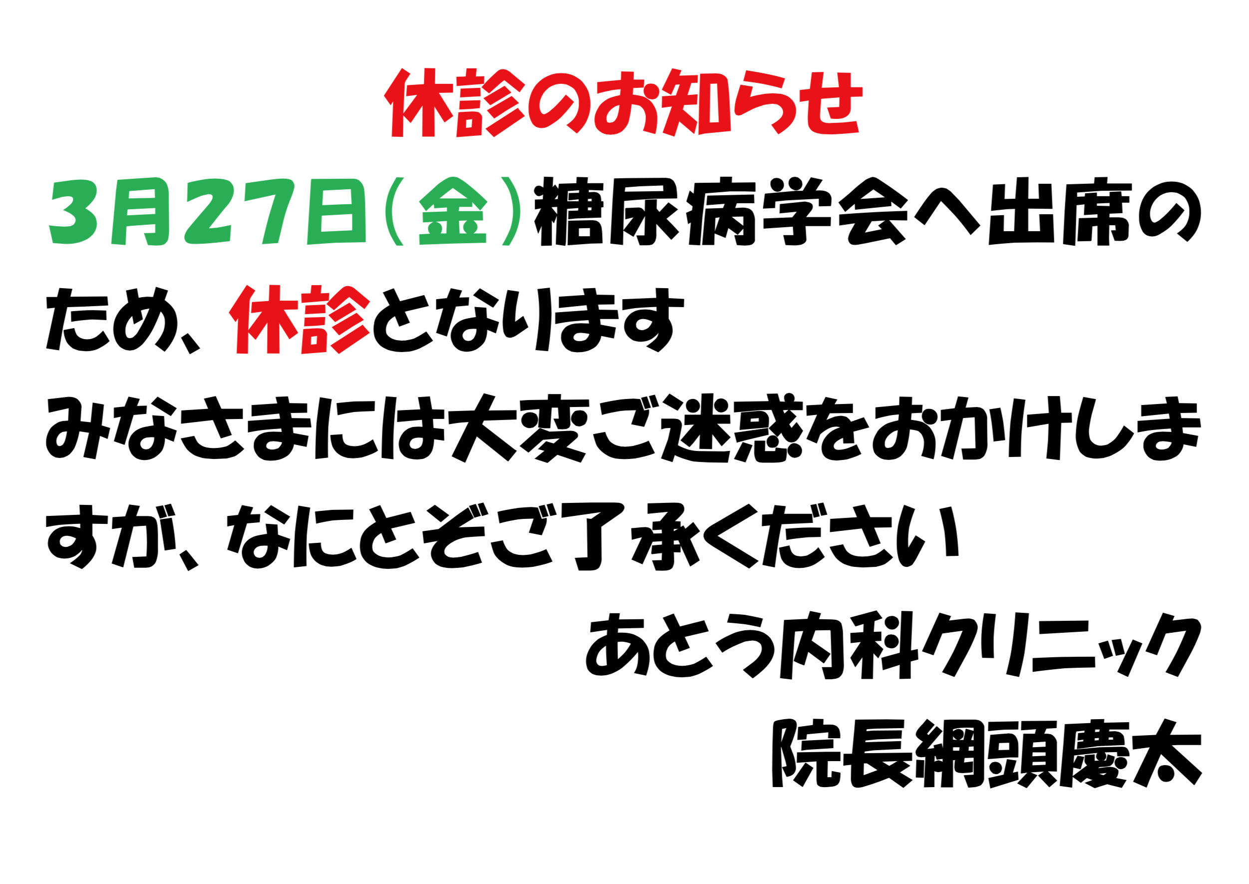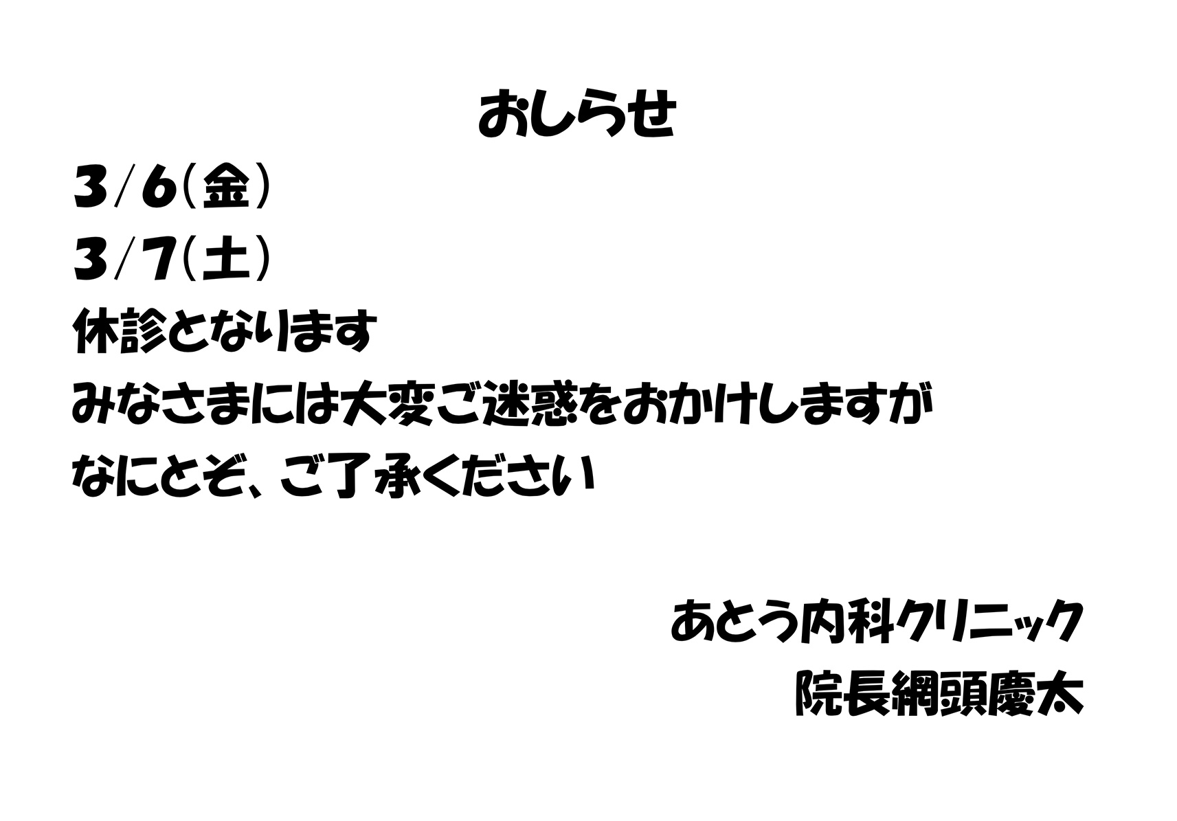 | 休診のお知らせ 2026/03/05 (Thu) NEW |